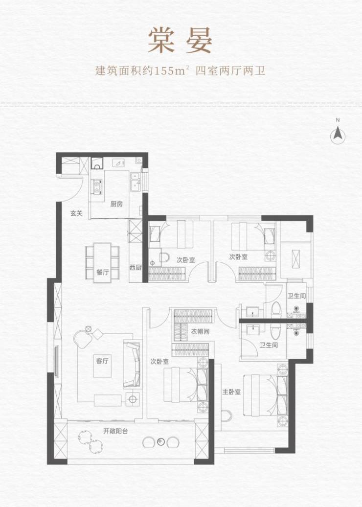 3️⃣棠晏丨建面约155㎡ 四室两厅两卫————