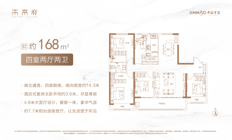 未来府精研空间布局,匠心打造建面约89-168㎡新奢府系,以IMAX宽幕迭新人居想象,以多面宽朝南,大尺度阳台为设计亮点,打造金质成长户型。