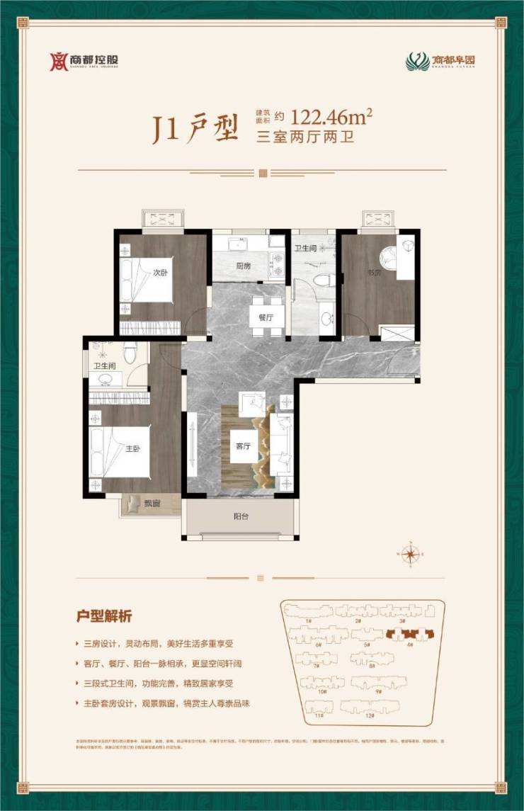 精研户型,以合理的空间配比打造建筑面积约52-144㎡的全系产品,满足不同人群的居住需求,整体设计以梦回商代历史情怀和复兴传统审美价值观为归旨,营造一种商韵流淌,境出雄浑的空间意境。