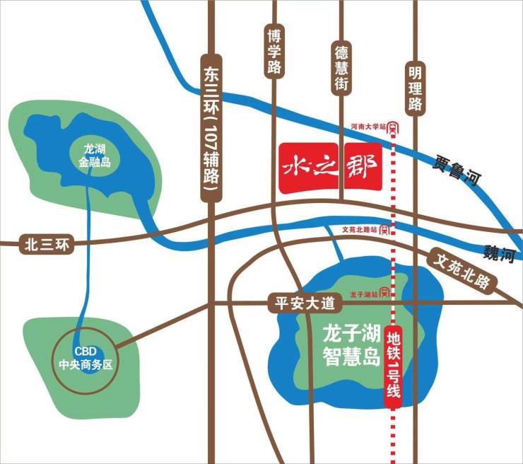 贾鲁河、魏河双河交汇,北龙湖、龙子湖举步可达。