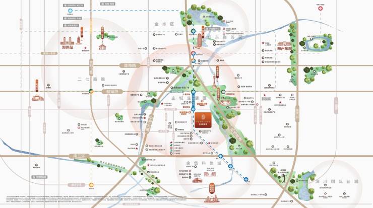 三核交叠:中轴线与金二环双重价值锚点,区域叠加管城文脉资源、郑东新区商务资源、郑州南站超级利好,荟萃全维生活配套与发展活力,以南部门户姿态定义城市精锐理想生活高地。