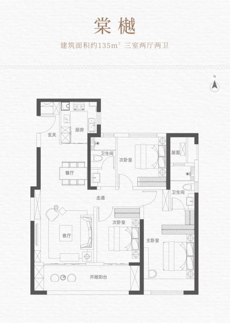 2️⃣棠樾丨建筑面积约135㎡ 三室两厅两卫————