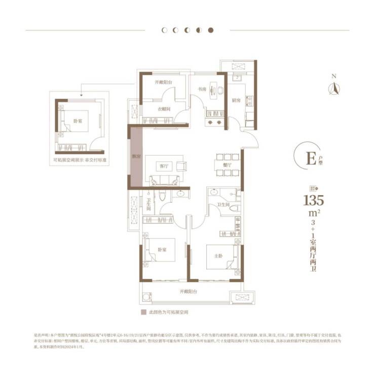 悦辰苑E户型:建面约135㎡3+1房两厅两卫