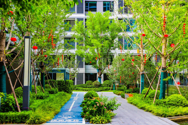 双公园:约6亩中央花园、南侧7.3亩朗境篮球公园,绿色生活更亲近