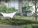 约100米自然城市界面+约60米酒店式落客门厅,以度假式的场景递进,重构城市改善归家标准