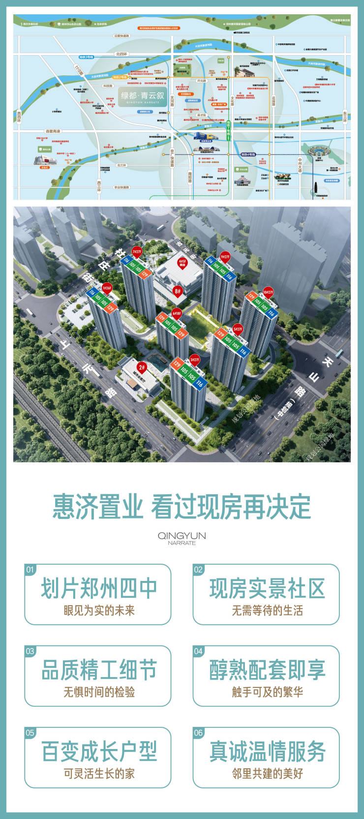 本项目推广名“绿都青云叙”(备案名:绿都上璟苑)。开发商:郑州惠强房地产开发有限公司。本宣传资料仅为要约邀请,本宣传资料作为项目介绍,相关图文、数据、文字仅供参考。买卖双方权利义务均以《商品房买卖合同》及其补充协议的约定及政府相关部门的批文为准。本宣传资料对项目周边环境、交通、教育、商业及其他配套设施的介绍,均源于资料发布时的政府规划,旨在提供相关信息,不意味着本公司对此做出了承诺,最终以相关政府部门公告及周边现状为准。在法律允许范围内,本公司保留对本宣传资料修改的权利,如有变更,恕不另行通知,制作日期为2026年1月,有效期6个月。