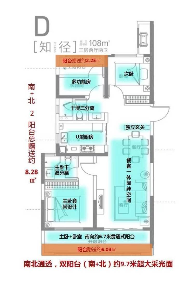 9⃣ 完美户型+双明卫+南北通透+超大赠送面积8.08-8.8平+落地窗