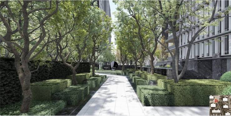 以大地景观艺术规制专属归家林荫大道;以中央架空层与庭院式会客厅营建近10000㎡中央会客园林,同时构筑约1400㎡架空会客厅;以鹅掌楸、银杏、乌桕、青桐建造四大风景林;以银杏林间6座景观桥串联6大主题游乐场地