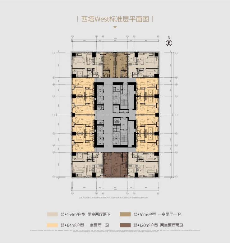 西塔【云玺】: 主力约60-154㎡,层高3.4米,产品线丰富,满足不同客群对空间的功能与尺度需求。
