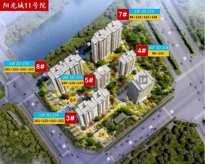11号院规划5栋高层、2栋配套用房。高层住宅涵盖建筑面积约:88㎡两室100三室152㎡四室