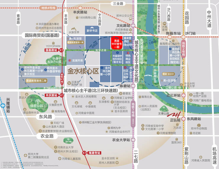 于中原经济腾飞的头部坐标——千亿金水核心,致力于城市活力焕新,打造中原城市更新名片;与郑东新区CBD、北龙湖副CBD联动,汇聚三区发展势能同时优享金水主城最醇熟配套。