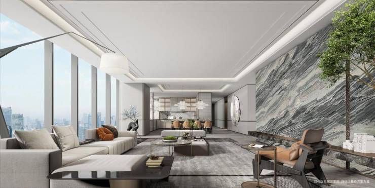 “无画之处,皆成妙境”,虚实相互结合以现代设计笔触,令金属、木制、石材等所有元素协调相处并以高级的色调,来演绎一种“现代的奢华感”风格。