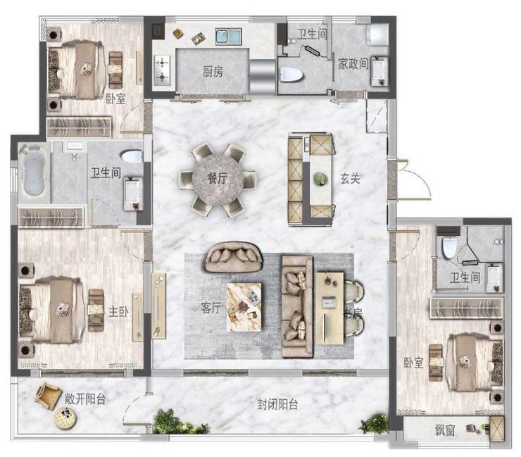 适老空间可变为无障碍空间,安享晚年生活主卧套间舒适空间,尽享尊贵生活,餐客一体超大空间洄游空间主客动线分离,整体空间更显开阔南向三开间270°观景体验,舒适美观