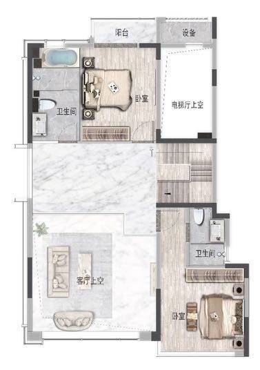下叠2层平面图主卫四件套舒适空间,尽享尊贵生活套房四套间设计,私密性强,体验尊贵南向阳台270°观景体验,舒适又美观