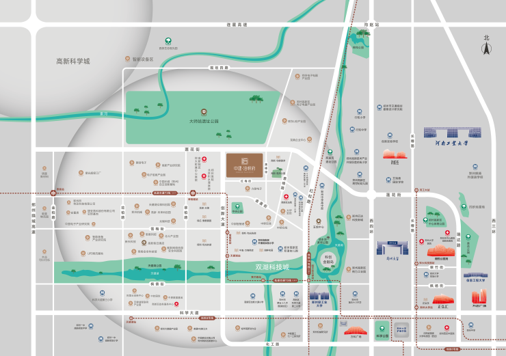 项目周边片区唯一三甲医院——郑州大学附属郑州中心医院高新医院(郑州中心医院双湖院区、北京积水潭医院郑州院区)