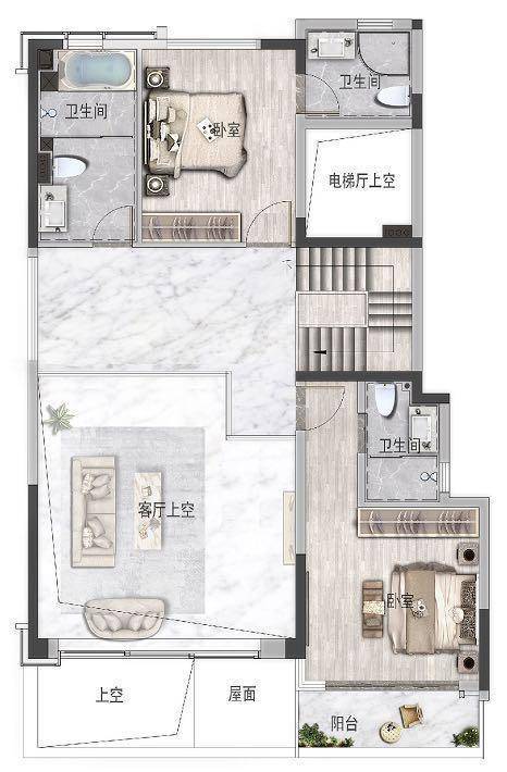 中叠4层平面图主卫四件套舒适空间,尽享尊贵生活套房四套间设计,私密性强,体验尊贵