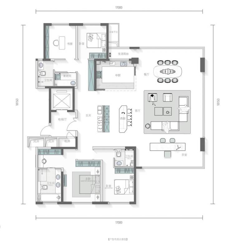 建面约179㎡,宋韵雅集的人居美学造诣