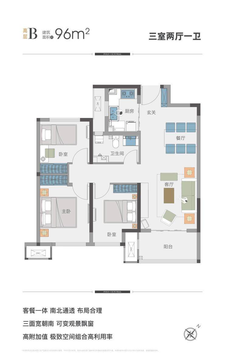 【产品类型】一期高层约96-100㎡三室