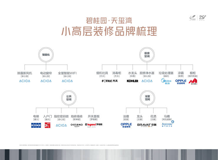 全线产品成品房交付,含新风系统、地暖等,选用目前集团比较高的装修标准,以实现更健康、更智慧、更人性、更省心的居住体验,装修基本采用国内外一线品牌,如芬兰通力电梯、五星级酒店首选的贝朗卫浴,国内知名家电方太厨具三件套、罗格朗开关面板、欧普浴霸、贝朗花洒、国内一线品牌欧神诺地砖等