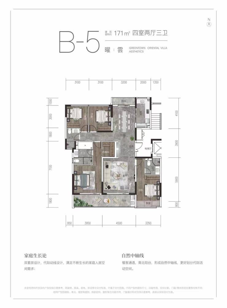 如雲灵动的空间秩序GOA设计主笔,摒弃兵营式布局,点板结合,尽显绿城风格。该项目规划南、北双大门,双门之间铺水系、景观、小品等,北门形象入口,彰显归家礼序;南门高质配套,生活氛围浓厚。