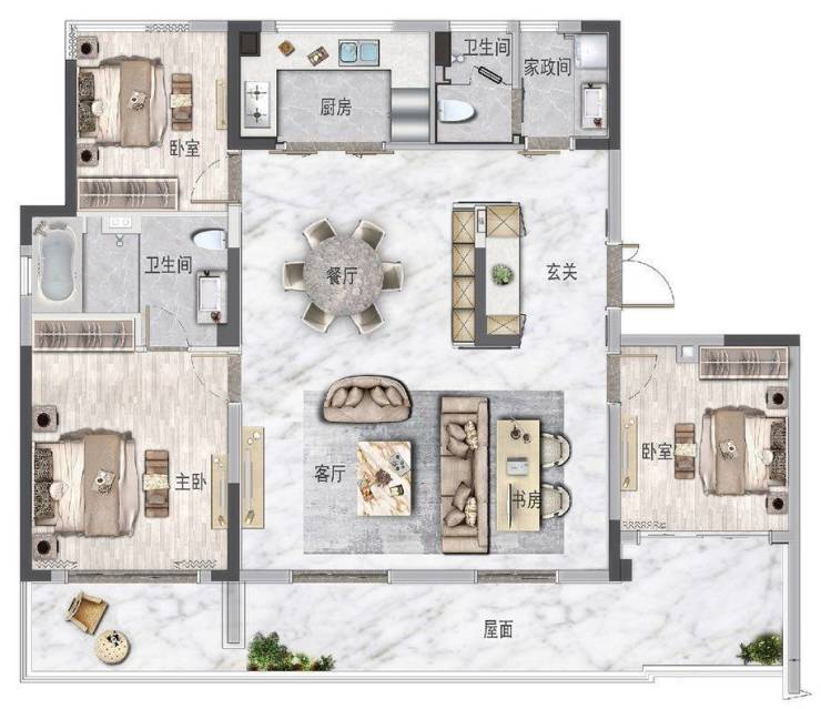 适老空间可变为无障碍空间,安享晚年生活主卧套间舒适空间,尽享尊贵生活,餐客一体超大空间洄游空间主客动线分离,整体空间更显开阔南向三开间270°观景体验,舒适美观
