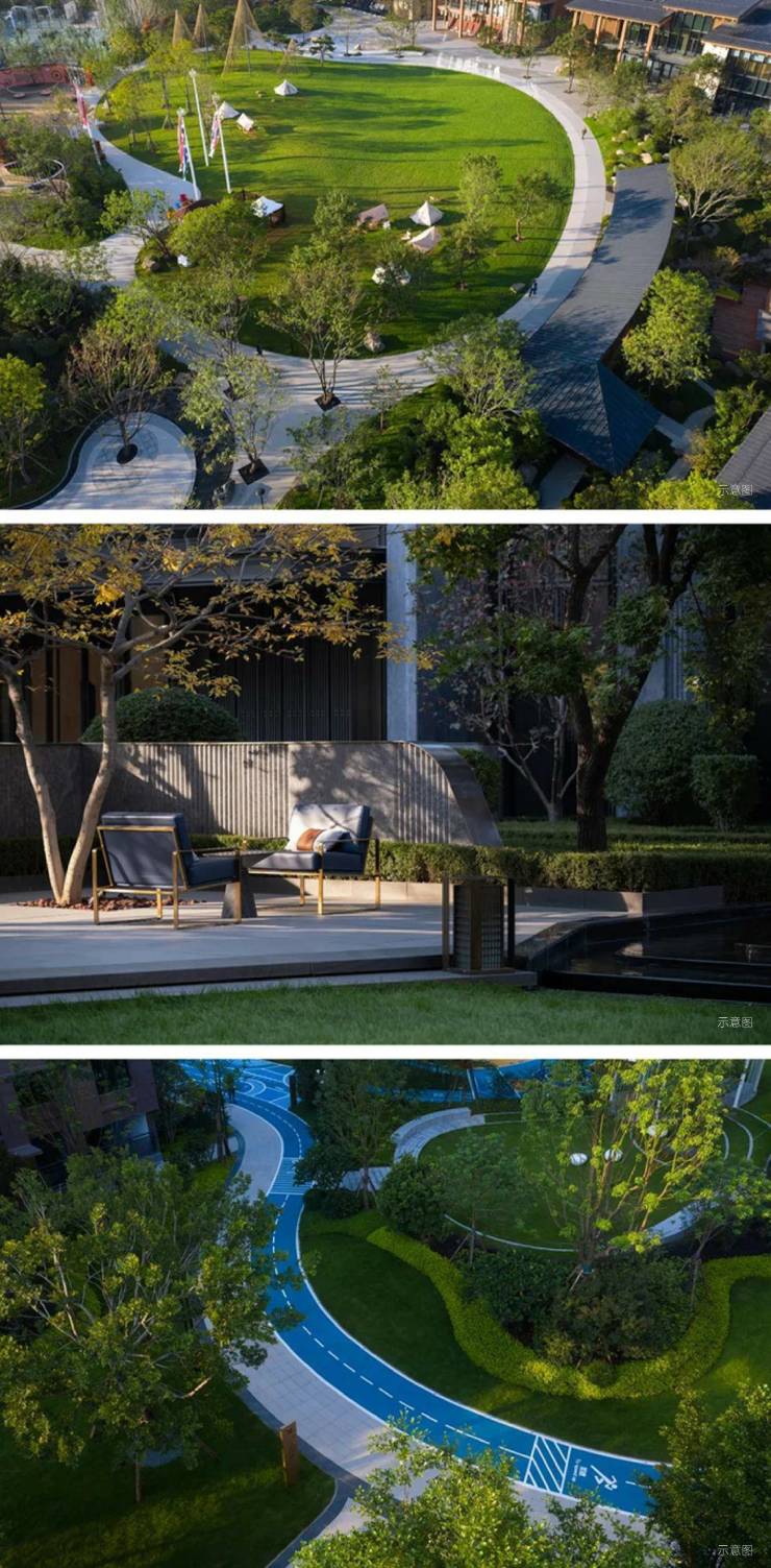 一轴两芯有机组合超大尺度中心花园600米环形景观健身步道