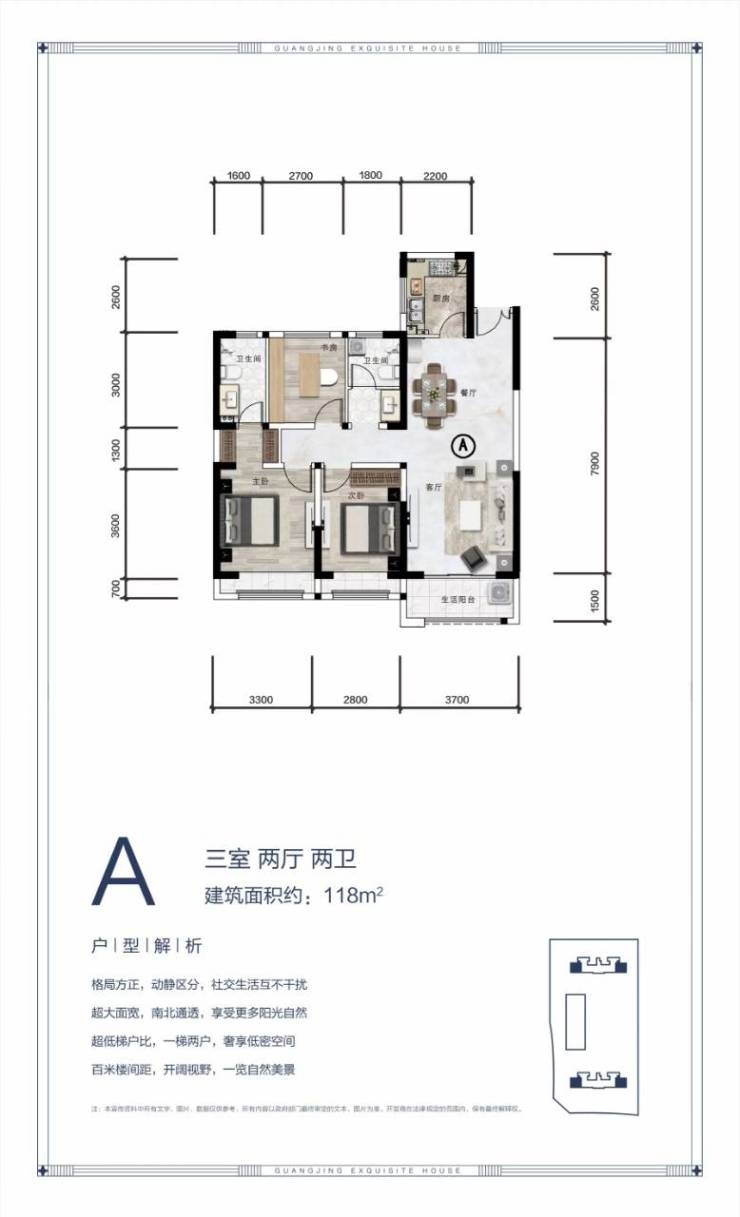 【冠景·上院】超百米楼间距,造就低密社区。一梯两户,一梯一户,极致梯户配比。精研人居需求,以空间哲学与宽广尺度匠筑约102m²-118m²舒适三房。