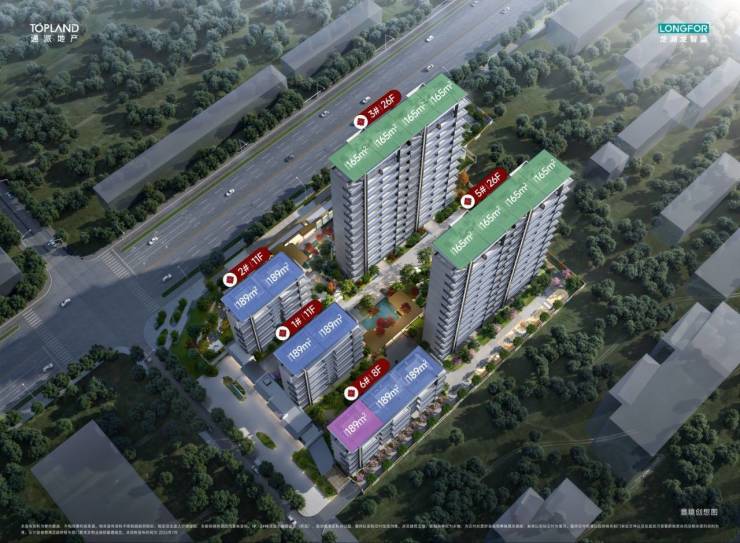 户型进阶:南北露台设计,奇偶层错落,竖向 F 形镜像分隔,兼具私密与采光,让居住功能与场景更多元化,较一期户型更完美升级