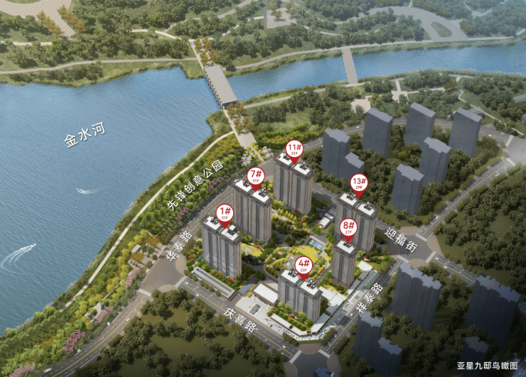 【亚星九邸】项目位于金水河安水思源段,总长5.1km,根据最新规划,河面将加宽至422.5米。未来将形成水岸密林、风光林带、科普教育基地,享真正河景房,家门口即可享度假式生活。