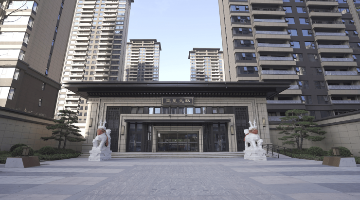 采用新亚洲建筑风格,线条明朗,沉稳挺拔,尽显大宅风范。社区入口引入公馆大堂概念,满满归家仪式感,彰显高端形象。