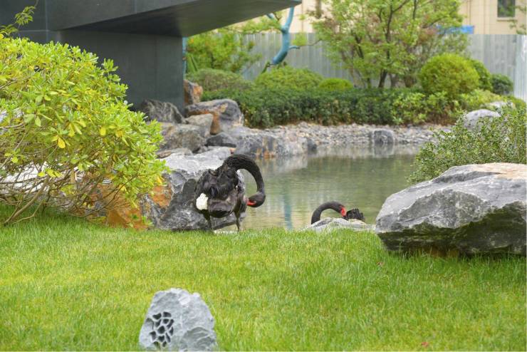 以十字形轴线为骨,以商代不同阶层人群的典故为蓝本打造主题鲜明的特色景观,东西轴线以8大核心景观呈现,约1000㎡中央福池水景供业主会客休闲,打造8大主题活动场地满足全龄人群的生活所需,一步一景、一景一花园。