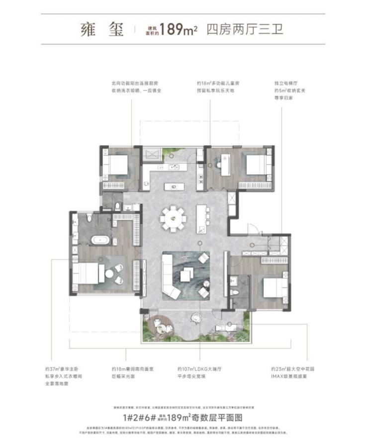户型进阶:南北露台设计,奇偶层错落,竖向 F 形镜像分隔,兼具私密与采光,让居住功能与场景更多元化,较一期户型更完美升级