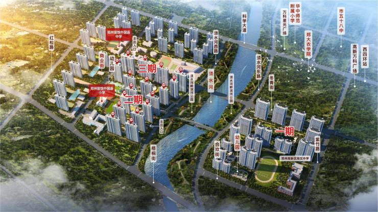 项目配套9年义务教育公办学校——郑州外国语学校(留馀校区),郑州外国语成员校,与外国语总校统一管理、资源共享。项目三期松樾与留馀校区直线约100米,小学部+中学部独立双校区办学;周边3公里内分布“双一流”郑州大学、省级重点郑州轻工业大学等高校资源。(教育资源已当期政府发布信息为准)
