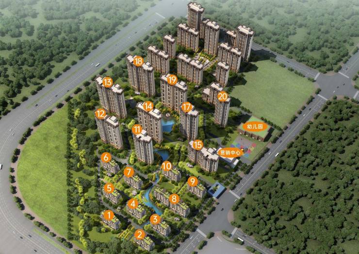 规划:19栋住宅、1栋幼儿园、1栋物业用房