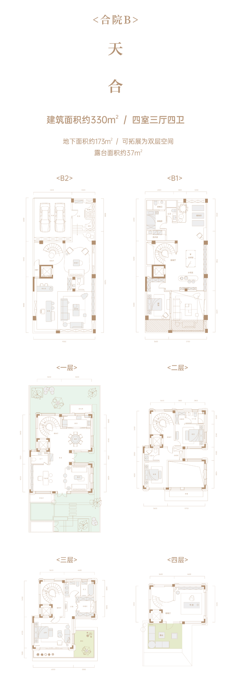 天地合院、建筑面积约176㎡-216㎡