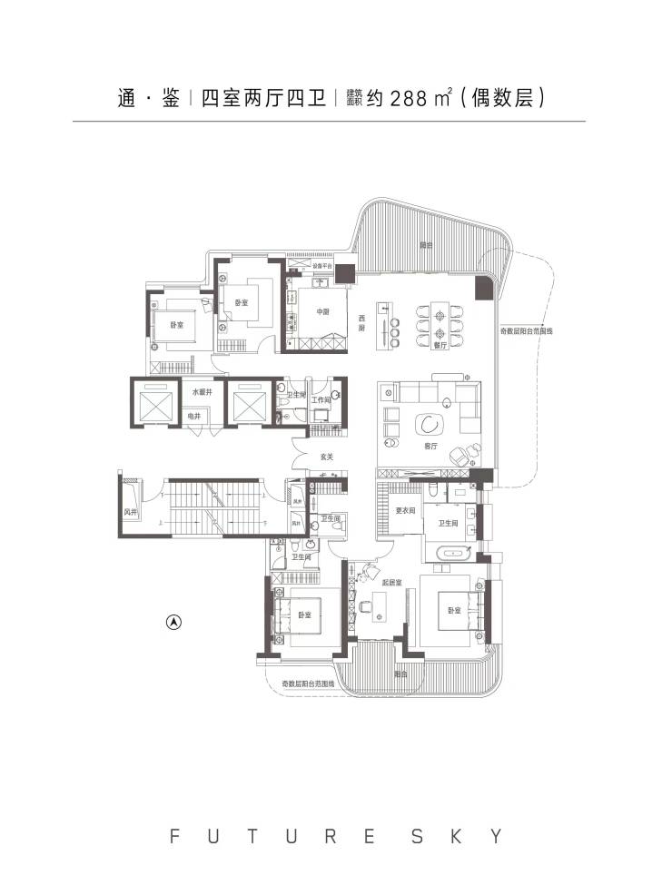 【主力户型】建筑面积约220-580㎡天幕大平层