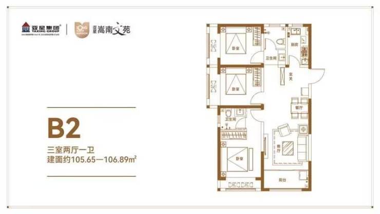 【B2户型】 105.65-106.89㎡ 三室两厅两卫