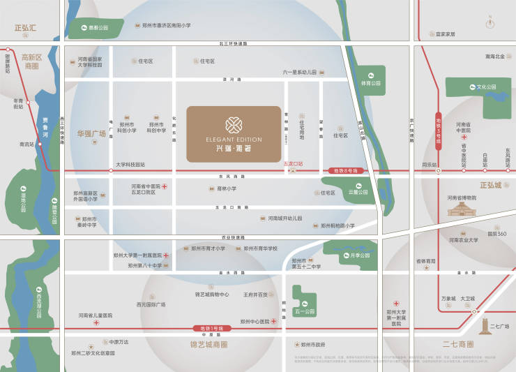 兴瑞·雅著,雄踞金水、高新、中原、惠济四区交汇的五龙口板块,集行政高度、经济动能、人文底蕴与生态诗意于一体,执掌城市未来席位。