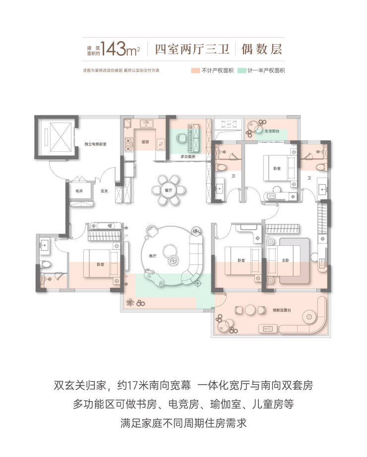 突破传统格局,打造可满足多元生活场景的成长型四代住宅。