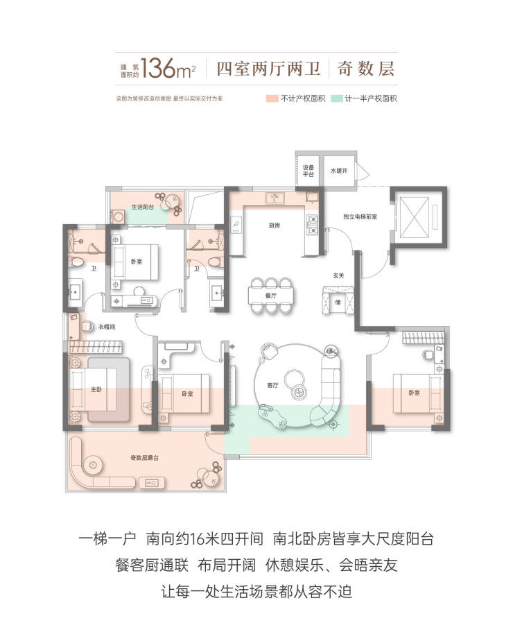 6.本户型图为标准层户型,相同户型单位因楼栋、楼层、单元等不同。局部结构、面积、管道位置等可能存在差异或存在镜像关系。本资料所涉及的户型仅供示意参考,不作为要约或销售承诺。装修装饰、家具、电器、陈设等仅为示意,不属于交付范围,也并非交付标准。