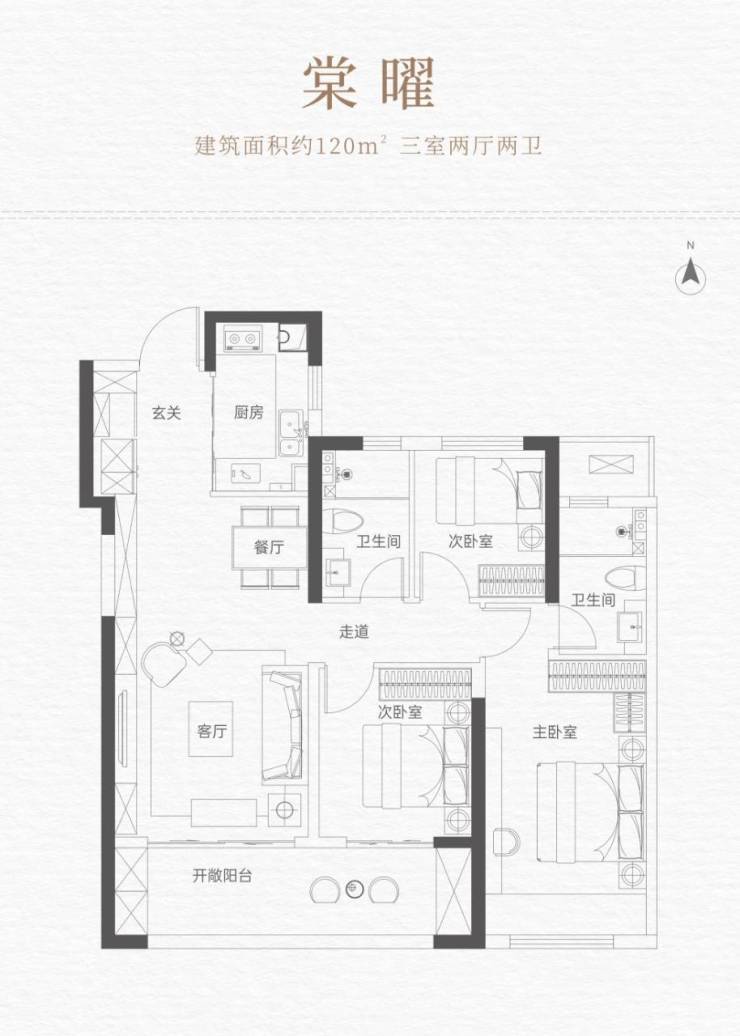 1️⃣棠曜丨建面约120㎡ 三室两厅两卫————