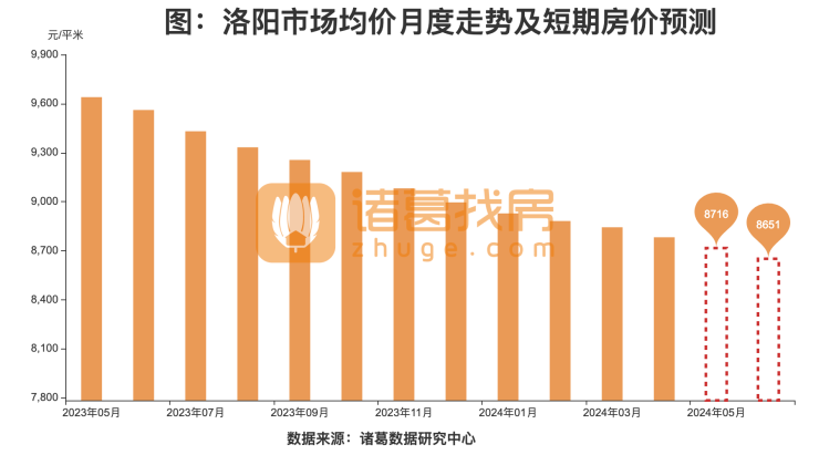 一、房价预测:洛阳未来2个月价格走势下降,累计下降1.5%