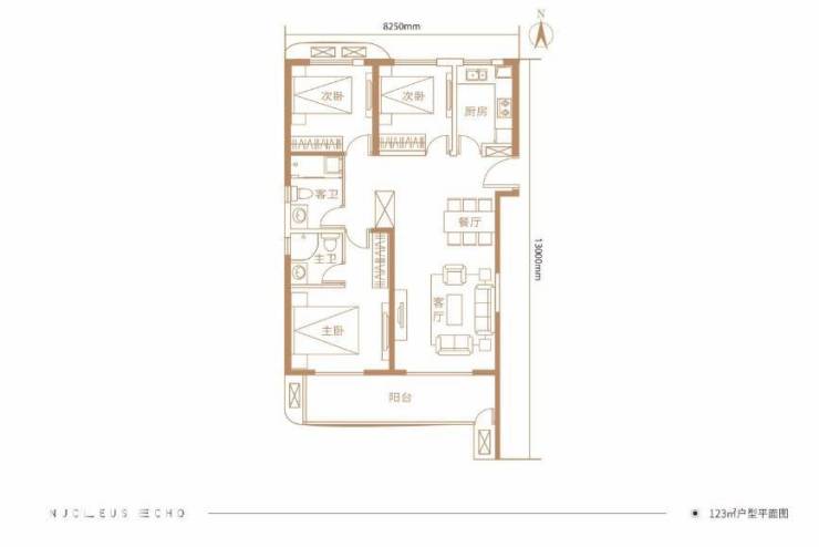 1、建面约123㎡ 三室两厅两卫