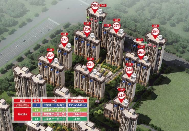 建筑类型:住宅(2幢高层总高26层;其余均为小高层总高18层)