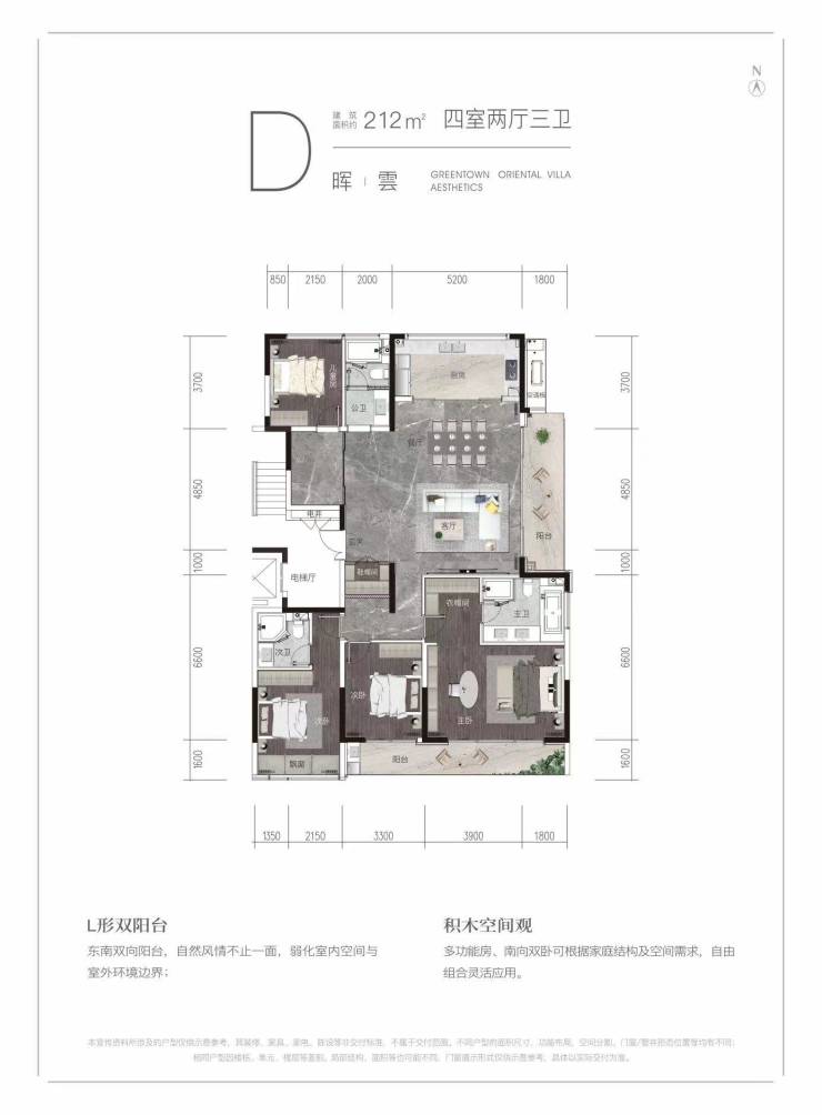 如雲灵动的空间秩序GOA设计主笔,摒弃兵营式布局,点板结合,尽显绿城风格。该项目规划南、北双大门,双门之间铺水系、景观、小品等,北门形象入口,彰显归家礼序;南门高质配套,生活氛围浓厚。